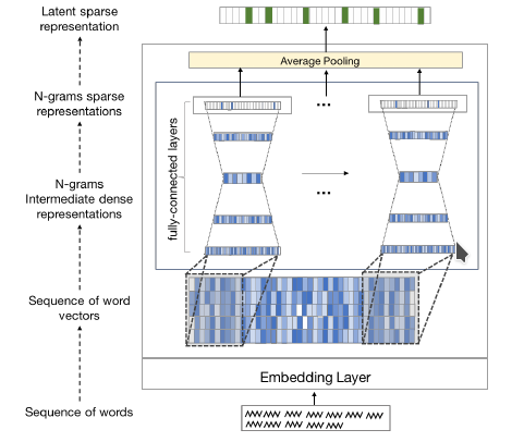 Shen, Y., He, X., Gao, J., Deng, L., & Mesnil, G. A Latent Semantic Model with Convolutional-Pooling Structure for Information Retrieval. CIKM 2014.